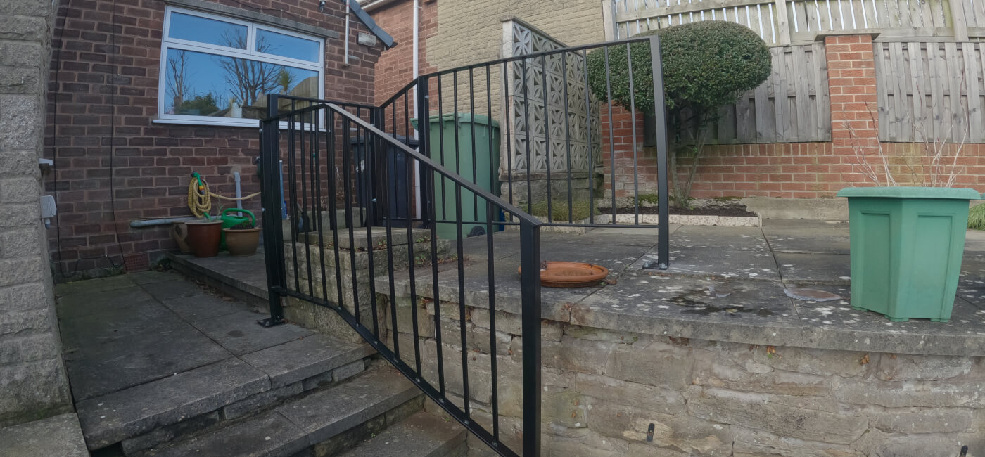 We were asked to design some steel railings in Dronfield for an elderly lady who needed them to be a bespoke height so that the handrail was the perfect height to support her down the steps.